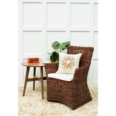 Spruce up you home with lovely floral accents. The hand crafted ribbon art Zinnia Wreath pillow features a wreath of pink, yellow and white flowers intertwined with greenery. Accented by lavender buds, this zinnia wreath pops against the beige ground and green piped border. Crafted with a soft polyester cover and polyester filling this pillow adds a touch of vintage to your home decor. Spot cleaning recommended.
