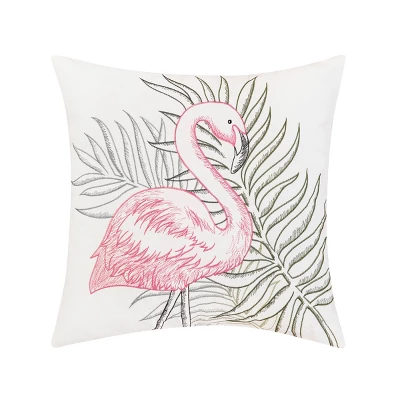 - This durable polyester pillow features an intricately embroidered pink flamingo over branches of tropical greenery