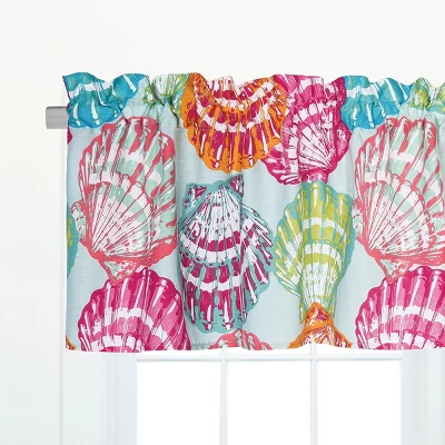 Bring the tropical sunshine and seashells of the beach to your home, without the sand. The Merrit Island ruffled valance features a vibrant scallop seashell pattern in shades of fuchsia, sky blue, tangerine and lime green on a white ground, sure the brighten the room and create a captivating focal point. Measuring 72 inches wide, this valance includes a two inch rod pocket and 1.5 inch decorative header. Crafted of cotton this unlined valance is machine washable for easy care.