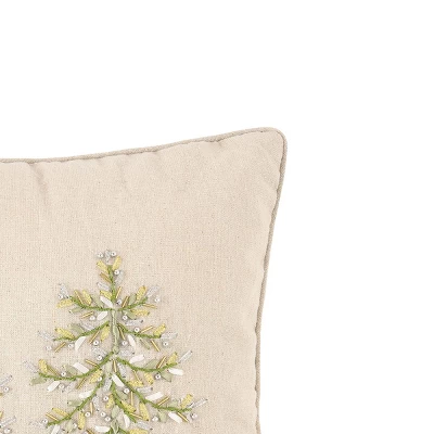 Accent your holiday decorations with the hand crafted captivating art of the Winter Garden Ribbon Art Pillow. Featuring an array of intricate ribbon branches forming two classic evergreen trees, this pillow and its unique texture will become a centerpiece of your Christmas decor. Finished with a coordinating piped edge and secured with a zipper closure. Crafted of a soft polyester/cotton blend cover and removable polyester insert for easy care. Spot cleaning recommended. Size: 16-inches x 16-inches